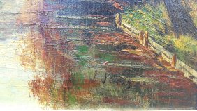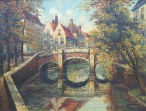 Wie weet wie de schilder is . Voorzover ik kan zien J.J......Ik denk dat het de Augustijnenbrug in Brugge is, dus misschien een Belgische schilder .