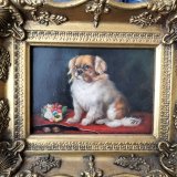 Lijkt op de schilderij looty maar de vaas op de achtergrond ontbreekt en de hond laat zijn tong niet zien. Is dit een origineel schilderij? Zie ook de ondertekening.